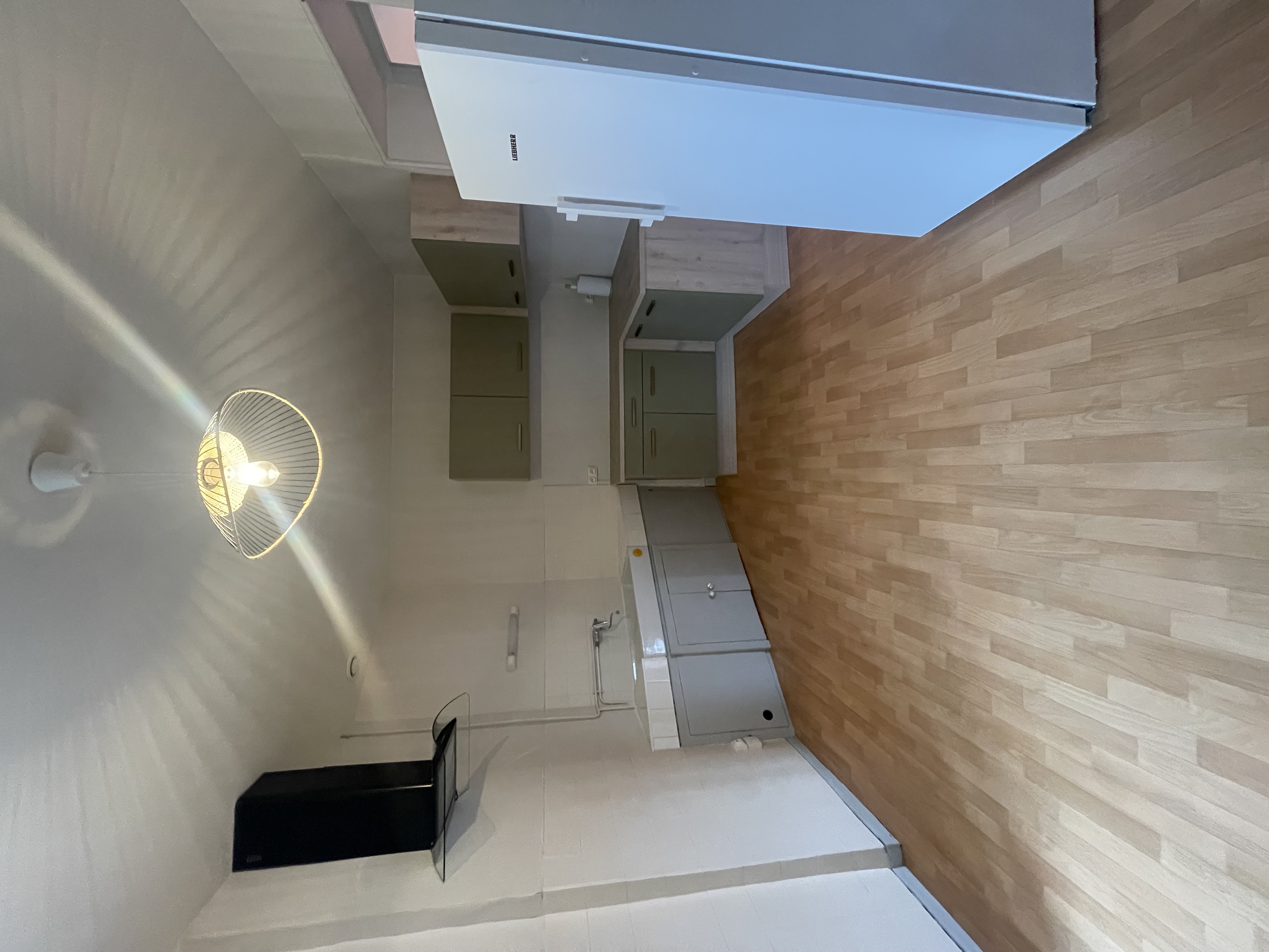 Lumineux et fonctionnel, il est composé d'une entrée, d'une cuisine entièrement refaite et équipée (Frigo et hotte), deux chambres sur parquet ancien, dont une dotée d'un placard de rangement, une salle d'eau avec WC.